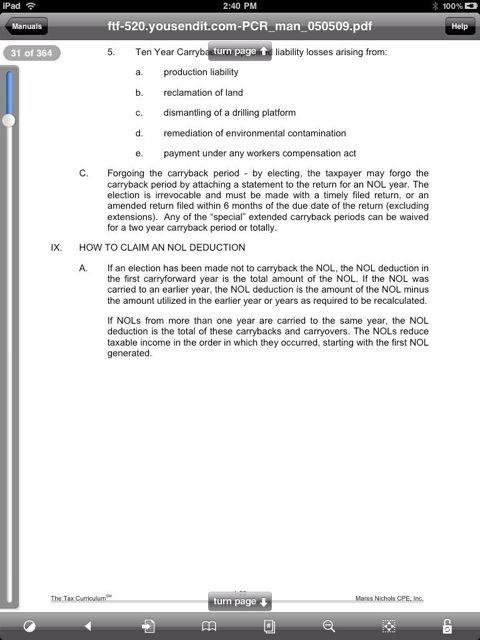 As well, unlike the Kindle, the iPad can be used for other things than simply reading books and manuals. While it doesn’t replace a laptop computer totally, it does function to eliminate the need to carry the laptop to many meetings and thus can be justified for more than just making life easier for the CPA’s CPE vendors.